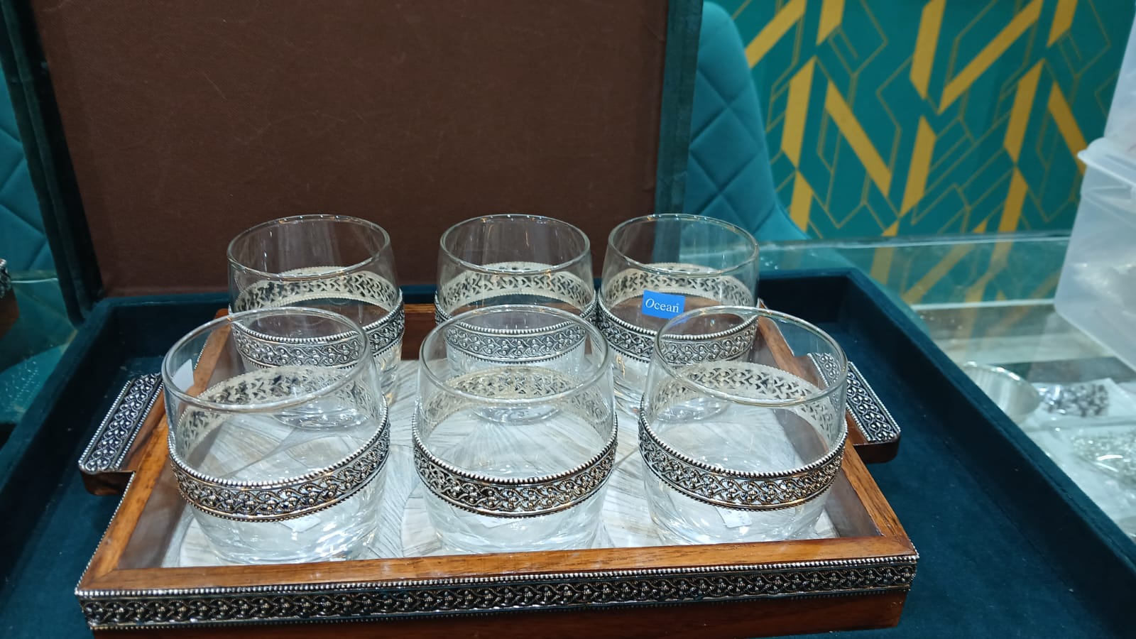 Add elegance to your table with our Metalwork Glass Set, expertly crafted to combine the charm of intricate metal designs with premium glassware. Perfect for serving beverages in style, each piece showcases exceptional artistry, durability, and sophistication. Ideal for festive occasions, family gatherings, or gifting, this set brings a timeless touch of luxury and refinement to every dining experience, exclusively from Divya Jewellers.